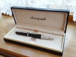 Before driving home to London, we stopped to take a look around Woburn village. There we found the Woburn China Shop and had a browse inside. Upstairs I was pleased to find a display of pens, each shown in its accompanying gift box. Closer inspection revealed that almost all were ballpoint pens but I found one unusual-shaped fountain pen, with the name “Autograph”. It was marked at £22.00 but with an unexpected 10% off, was mine for £19.79.