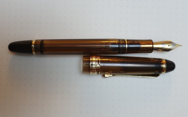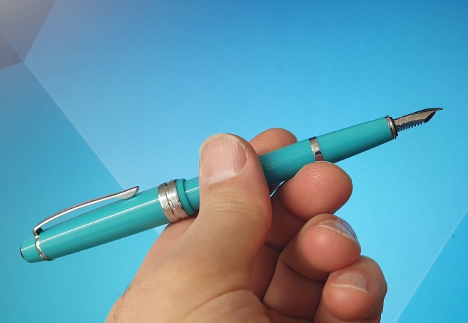 The Sailor Pro Gear Slim, with 14k music nib: The music nib provides a very pleasing italic line for general writing, when held at a consistent angle and when you keep it at the sweet spot. I think the “Slim” name is rather a misnomer and could be off-putting for some. The girth is not particularly slim, although it is smaller than the classic or the King of Pen, which are progressively larger. However it is a short pen at around 124mm capped, almost pocket-pen size, yet makes a very comfortable length when the cap is posted. This pen has won a special place in my heart.