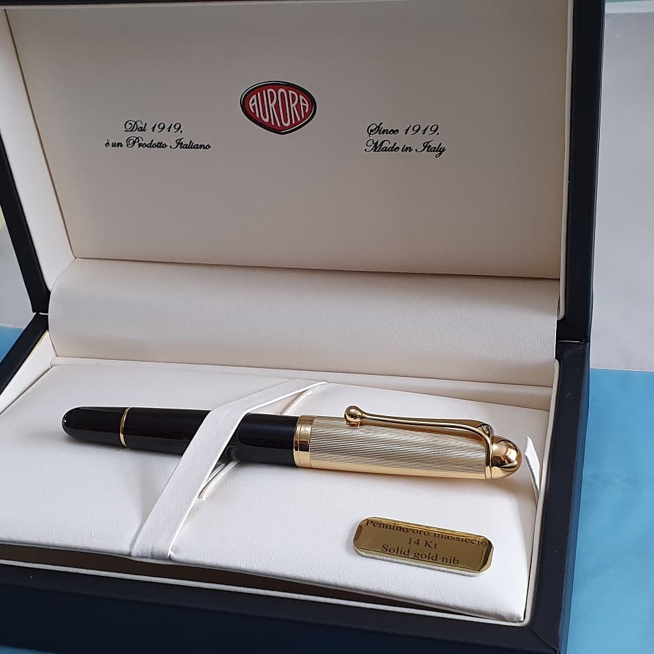 - Aurora 88, black resin with gold plated cap, 14k gold nib, Medium:£344.50.