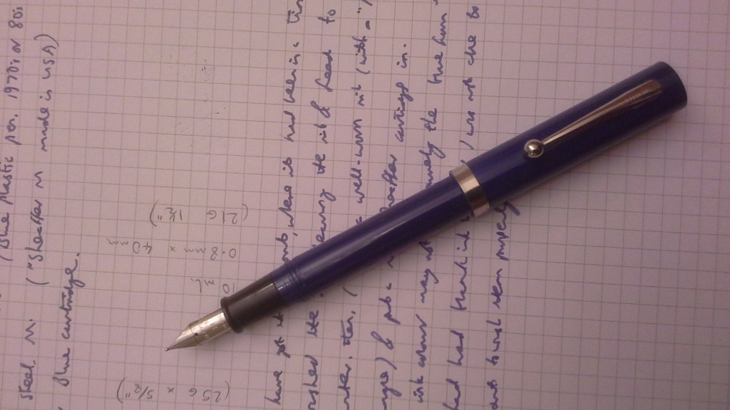 I love these posts of your old school and university fountain pens- they are a real trip down memory lane! I also used to have a Shaeffer No Nonsense- blue like yours- but I think it has disappeared in what Shakespeare nicely described as the “dark backward and abysm of time”… They were excellent and so reliable.