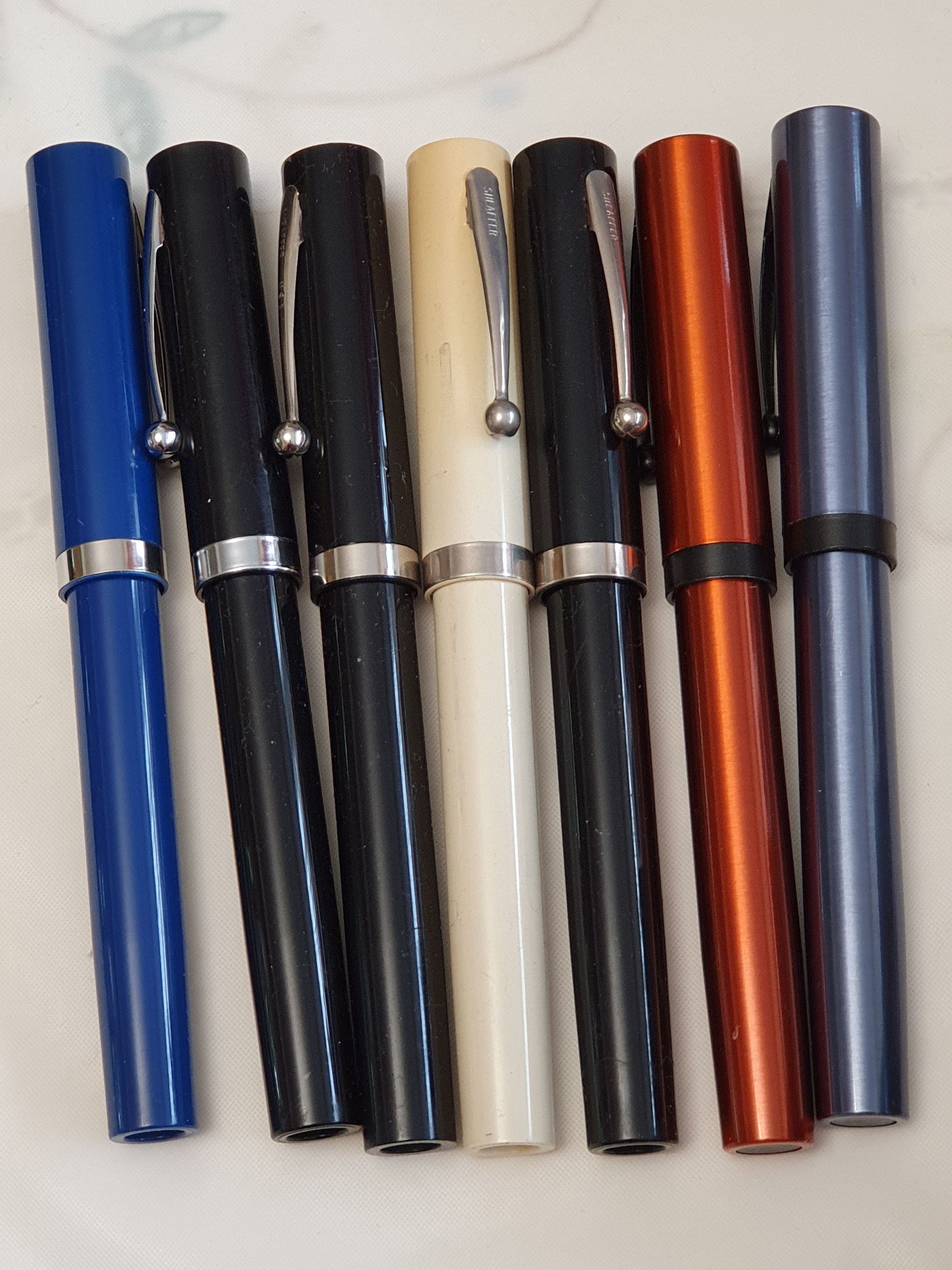 The Sheaffer No Nonsense was available in various colours but I tended to buy blue, black or white. I also found some metal bodied versions, supposedly superior and bought a couple of these although I actually preferred the normal, plastic ones.