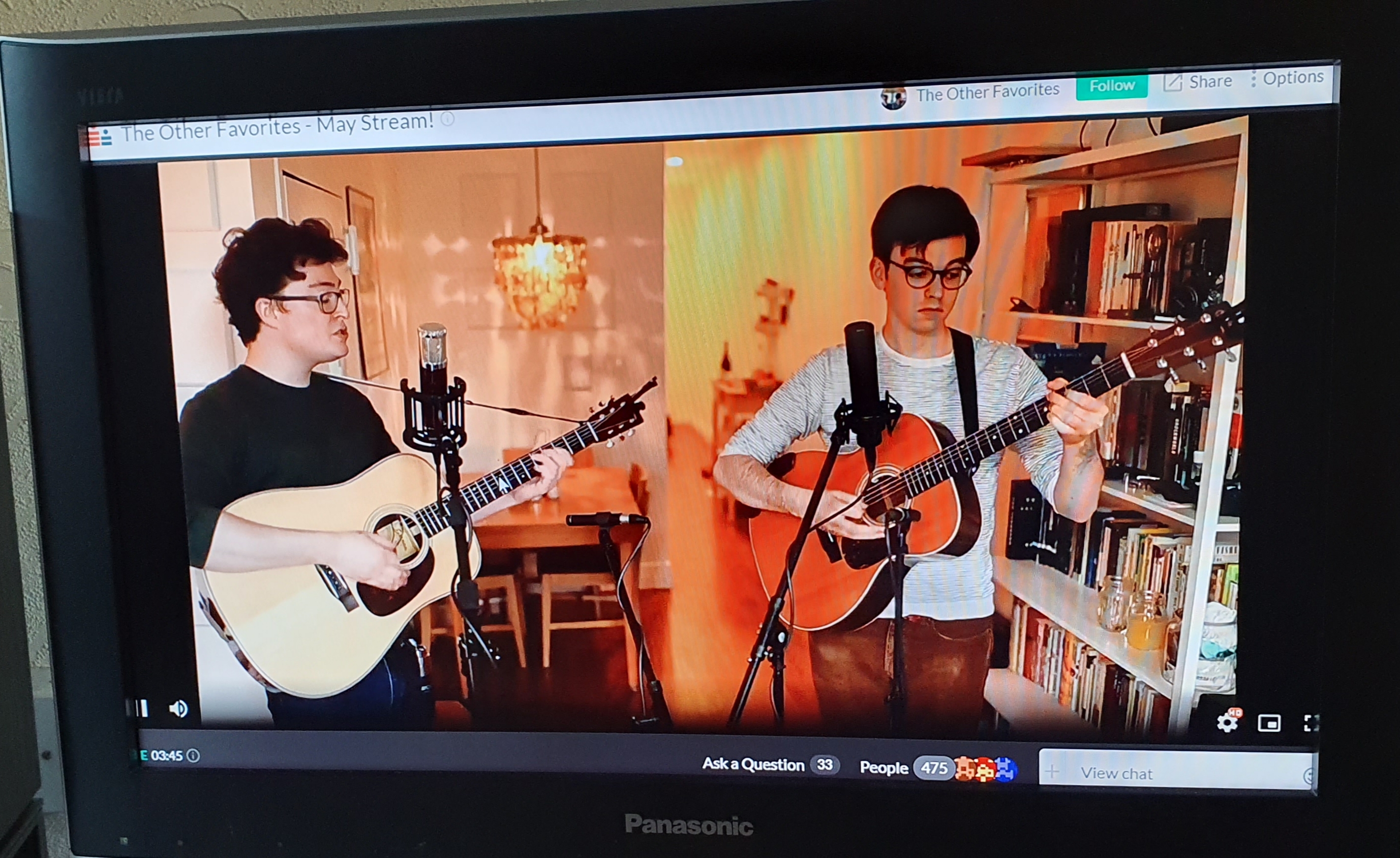 On 23rd May 2020, I joined a live stream concert given by The Other Favorites, the duo Carson McKee and Josh Turner. This was their third such venture and was streamed from Josh’s apartment in Brooklyn, New York, conveniently timed at 2.00pm eastern time, being 7.00pm for us watching in the UK.