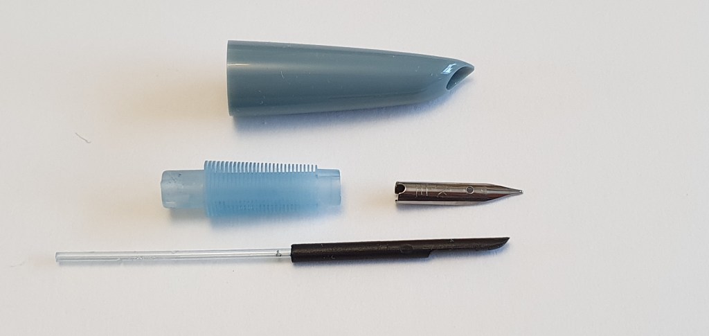 In between washing the pen parts I took the photos for this post. It was only on looking closely at these after refilling, that I noticed the gap all along one side of the ink collector. I feared that I had damaged it, perhaps by squeezing too hard to pull out the nib. However, I checked my other model 601, (a demonstrator version and so I did not even need to remove the section). I could see the same gap all the way down the ink collector and was relieved that it is meant to be like this and not some damage of my doing.