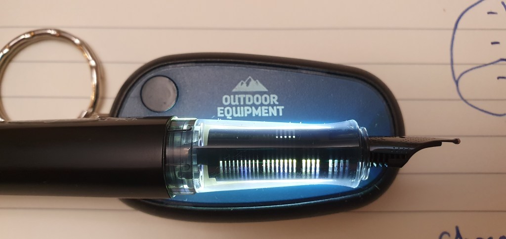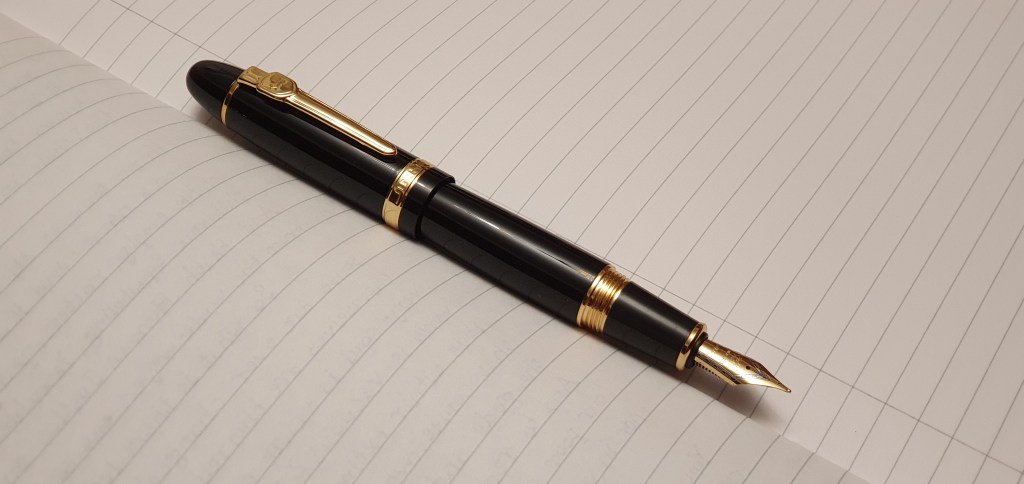 This year, I have enjoyed using an A5, page-a-day diary from Rymans. It has what they call a “Soft Cover” but is a stiff cover but finished in a soft texture material that feels like leather. The cream coloured pages give you 23 rows with a row height of 7.9mm which is reasonably wide and I find this ideal. Currently, I use my Diplomat Excellence A Plus, with a Fine steel nib and Pilot Iroshizuku Shinkai, blue-black ink. It is one of those combinations that is a marriage made in Heaven and which you never want to end.