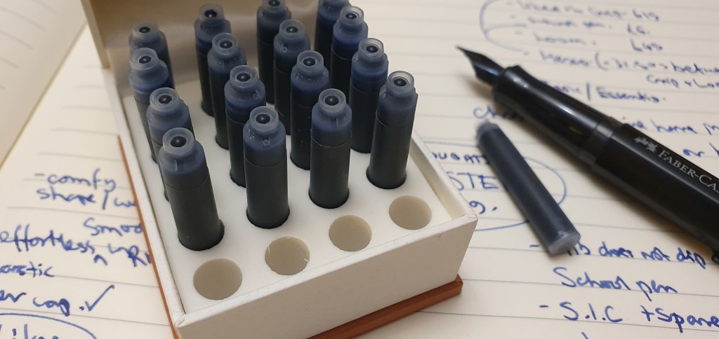 One of life’s great pleasures is writing with a fountain pen. My lifelong habit of journaling, or keeping a diary, is another and to combine these two makes for a great start to a day. Just having ten minutes, to collect my thoughts and reflect on the previous day and then record it in ink and “offload” this into my archive, is something I cannot do without.