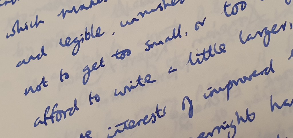 I have not filled the pen completely as I will try some more adventurous colours next. It is easy enough to swap out the nibs too and I need to give the others a proper go at some stage. Having found that the Oblique nib is capable of such smooth and pleasurable writing it just remains to test longer term for hard starts and for possible burping of ink, which eye-dropper pens sometimes suffer from. I hope I have not spoken too soon but so far all is looking good. At £23.99 I think this represents great value. If any bad behaviour occurs to take this grin off my face, I shall add an update.