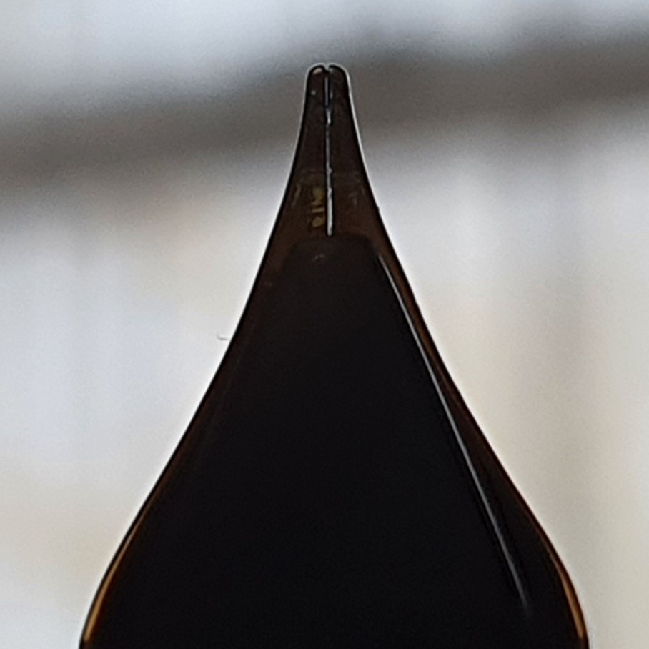 When I looked at the steel nib, my first thought was that they had made a mistake or else run out of bent nibs and had given me a standard fine nib instead. However, on closer inspection, I saw that it was I who was mistaken and that the nib was indeed bent.