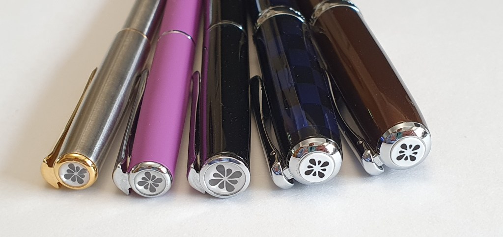 In between making several laps of the hall, stopping for numerous conversations with friends and friendly dealers and a break for lunch, the outcome was that I still came home with four new and very useful fountain pens, coincidentally equalling the number that I gave away and so remaining “pen neutral” without increasing my fountain pen footprint (if that is a thing). Here they are:-