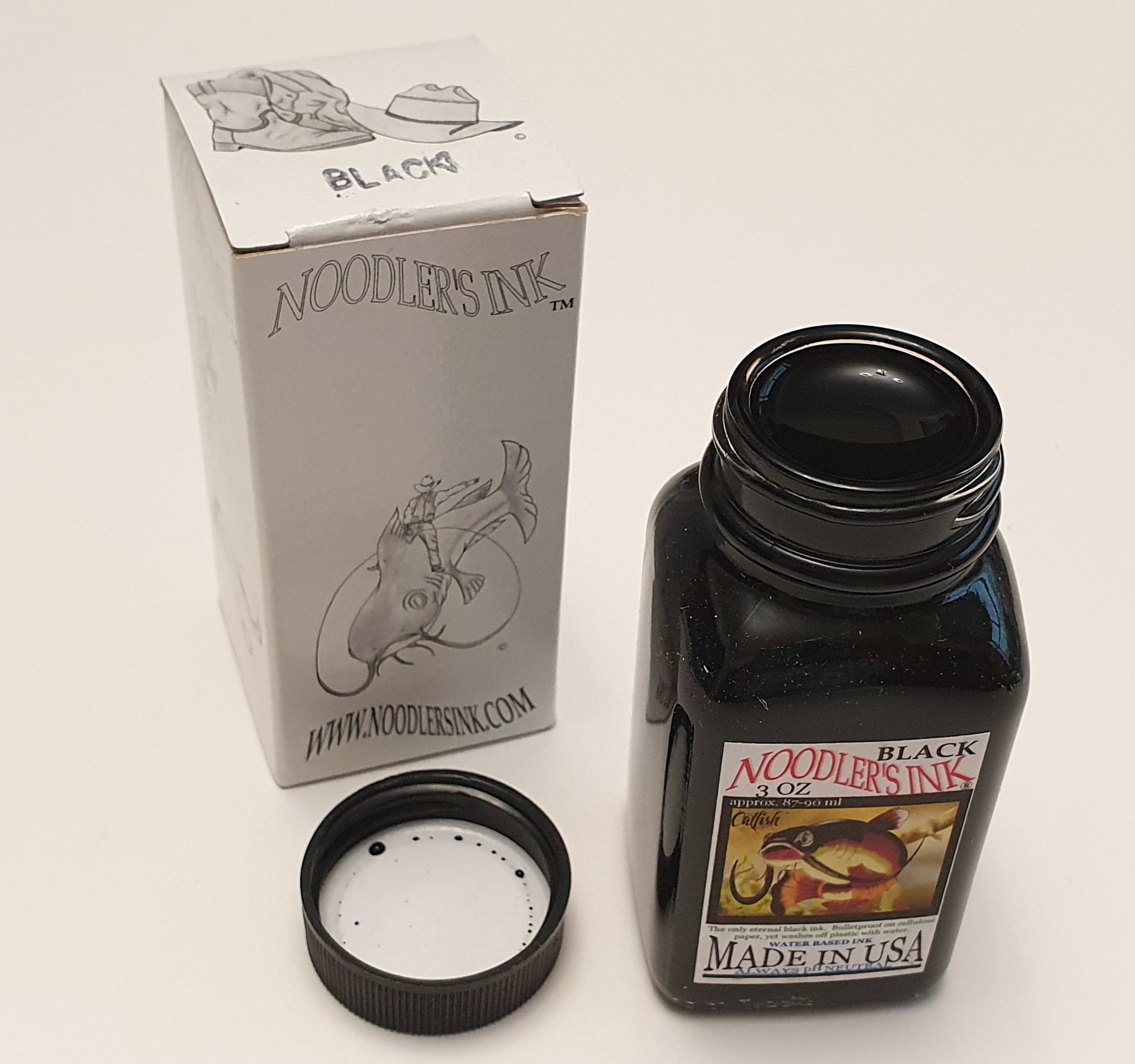 So, those are my purchases. So far I have only inked the Sailor and am thrilled with it. I first dipped and then filled it with Noodlers bullet proof black ink, which was my only other purchase of the day. I had heard good things about its water proof qualities for highlighting or water-colour painting over.