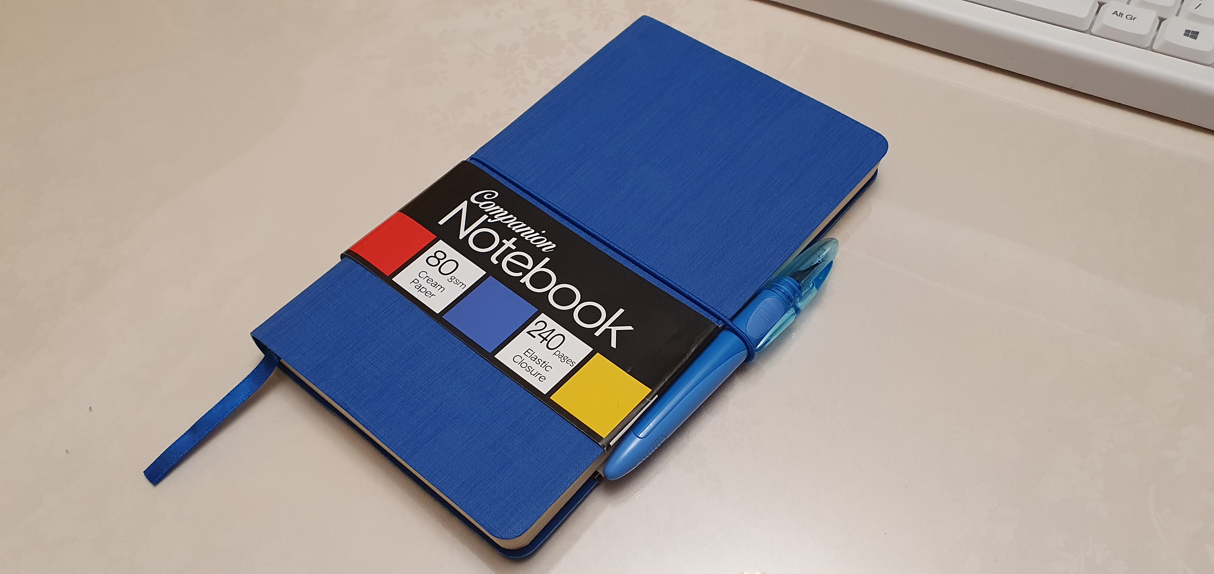 I did however succumb to purchasing a Companion notebook in the post-office, (as you can never have too many notebooks) with 240 pages of 80gsm paper. The texture of the cover was particularly pleasing and they were available in red, blue or yellow. I got a blue one but later kicked myself for not getting the red and yellow as well. The paper turned out to be very pleasant to write on with ink, although a bit prone to bleed through and so you need to chose your inks carefully. I am still yet to beat my Leuchtturm notebooks as the best all rounder, from what is readily available on the High Street. I use the Companion notebook with a humble Bic Easy-Clic cartridge pen, (which never hard starts!) as a bedside jotter.