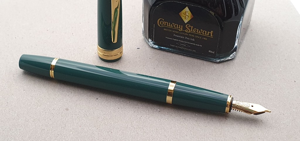 A few of the other arrivals this year have included three Diplomat Excellences, two more of the Moonman S5 (they are so good!), two more Cross Bailey Lights (I could not resist the green and the burgundy versions with gold coloured trim); two steel nibbed Sailors: a blue demo Procolor 500 and a sparkly dark red Shikiori, which seems to be its successor. Both of these have fine nibs which, in Sailor terms, means an extra fine.