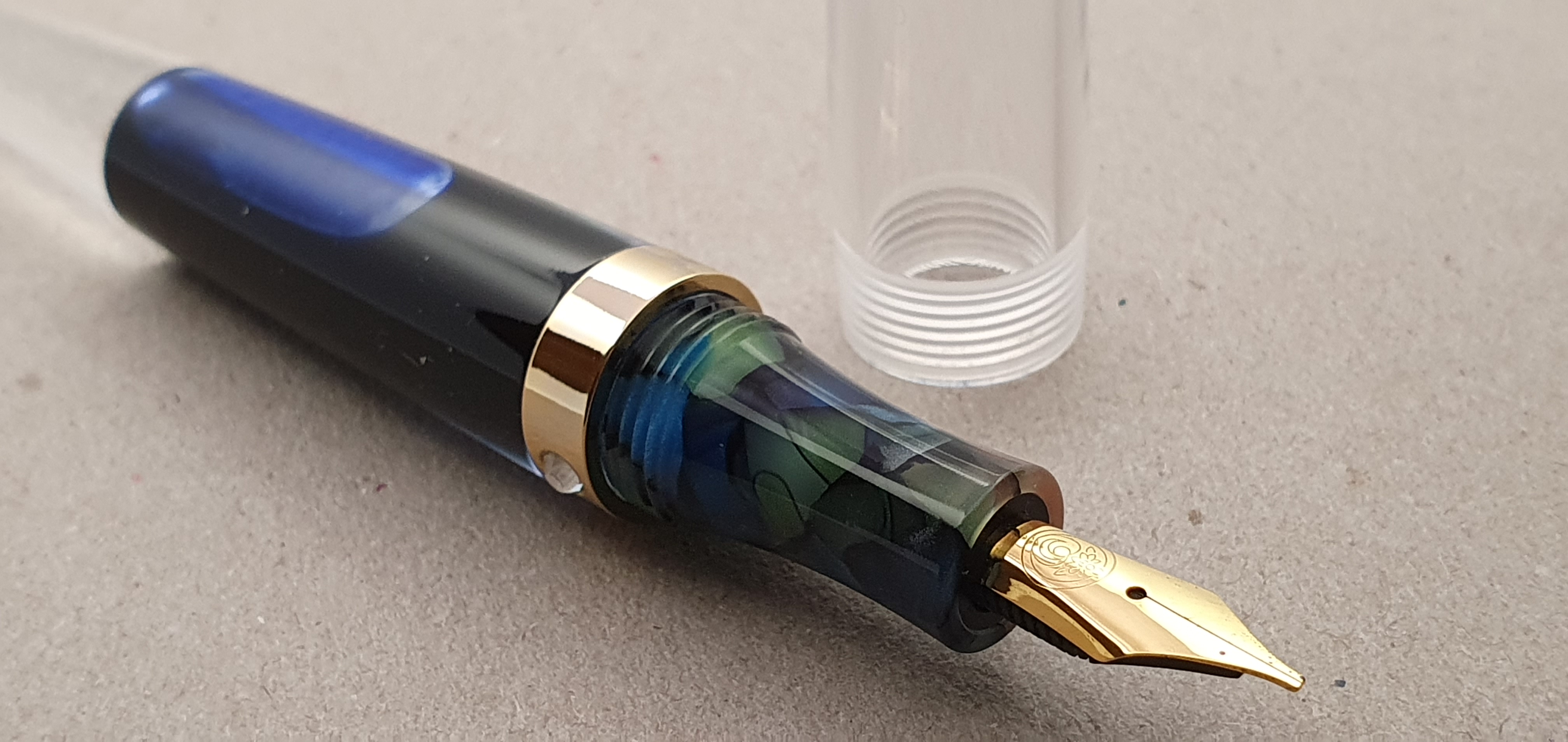 I attended the London Spring Pen Show (postponed until July) and Autumn Pen Show in October. Both took place at the Novotel in Hammersmith. The spacious, airy venue proved a big improvement on the previous events held at Holiday Inn, near Russell Square in recent years. It was good to see so many pen club friends again. Seven of my pen purchases came from these two events. Also, not included in the total, was a new titanium nib unit with an ebonite feed in Jowo fit housing, also purchased at the show. They were available in Jowo or Bock fittings and in a selection of widths. Mine went in an Opus 88 clear demonstrator and gives the pen a whole new character. The nib was just a tad longer than the original and I needed to make a little more space in the cap. This proved easy without major surgery, as the finial unscrews and I just added an O ring.