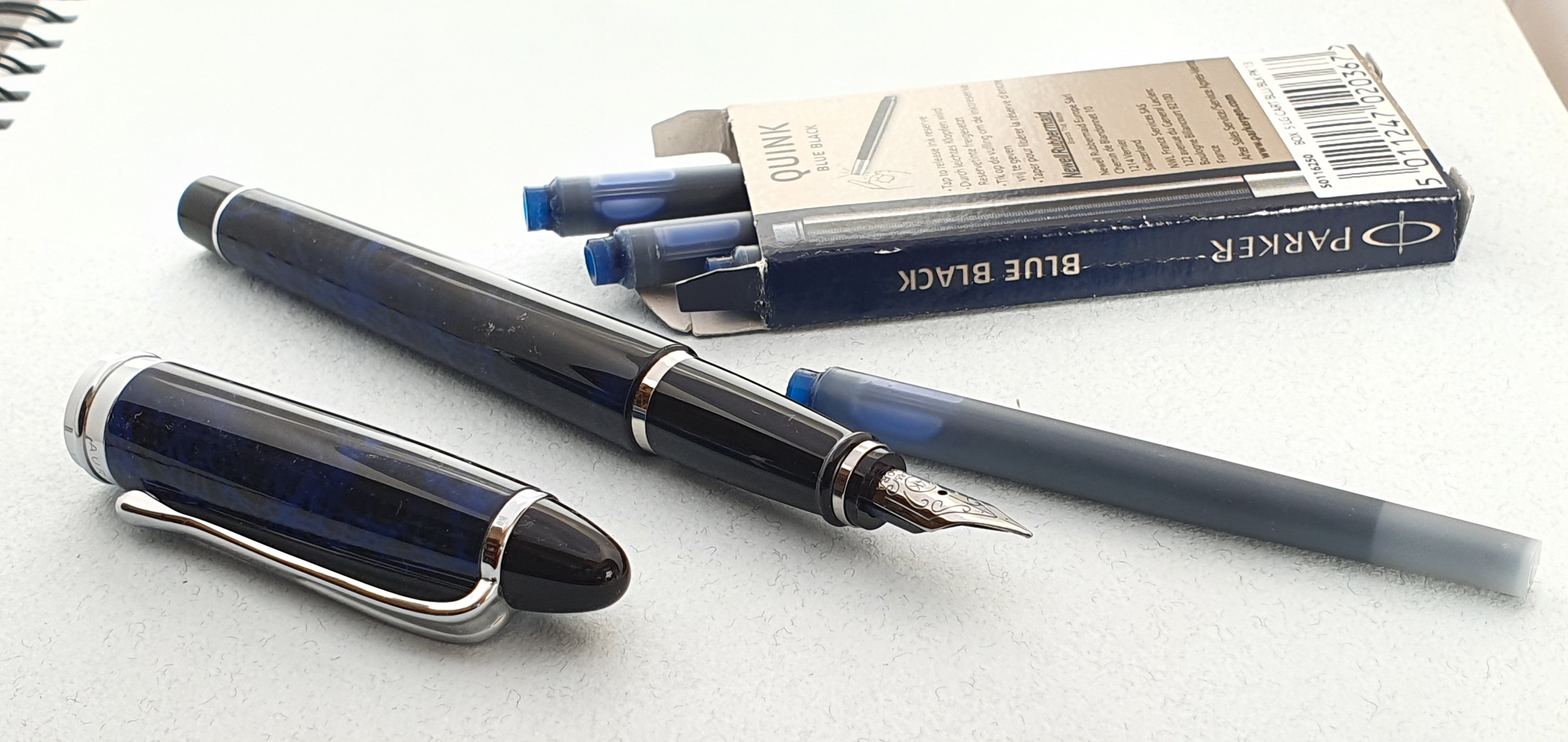 Ultimately, if the plunger does become too stiff I fear that the piston shaft could break. I assume that it is plastic, as the pen is so light. Hopefully, being inked regularly with a well behaved ink like Serenity blue will be good for the pen and keep the piston working. That said, it has not happened yet and the pen does have a lifetime warranty. Also, it was not hugely expensive at £129.00 and even if the piston mechanism fails, the nib, feed and cap could all be salvaged.