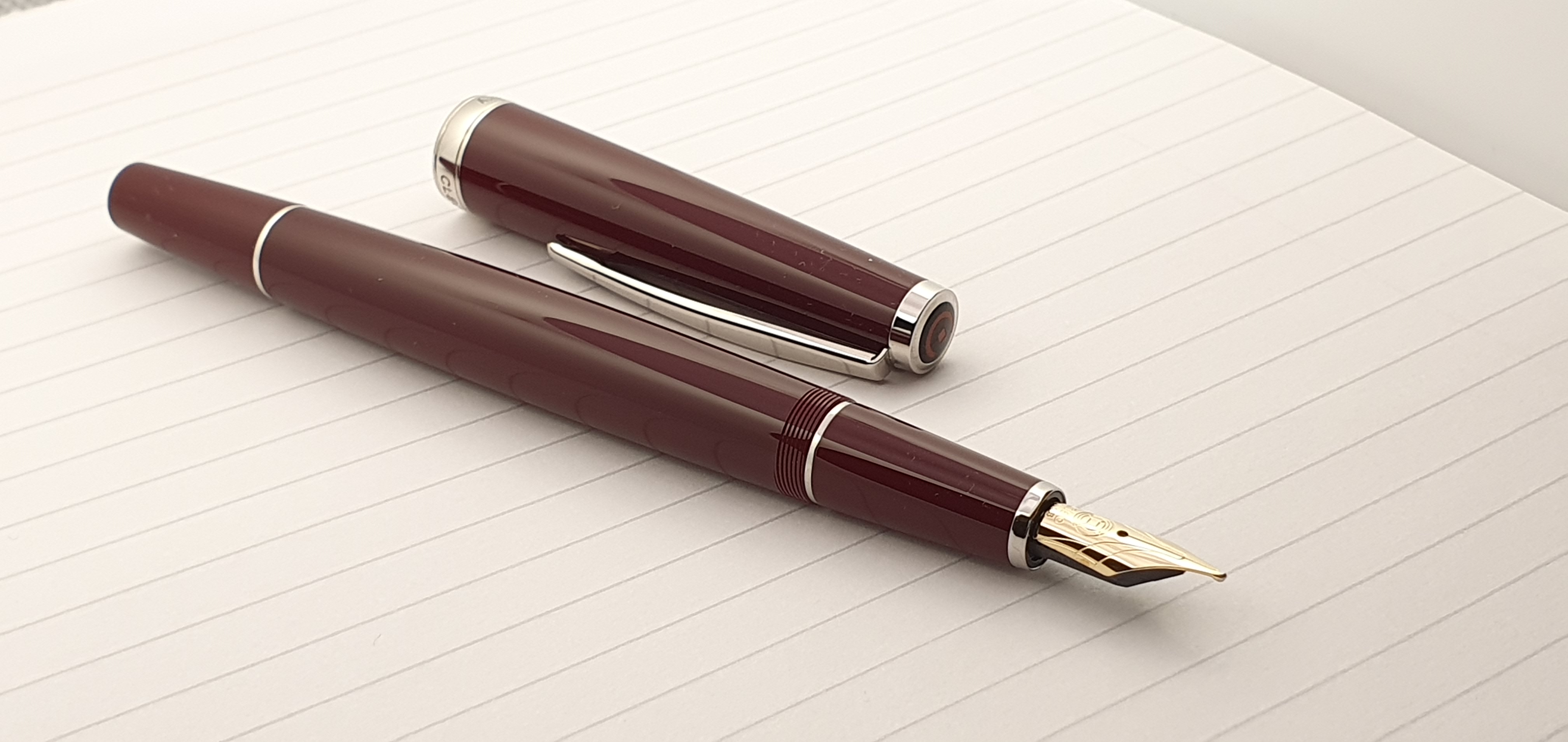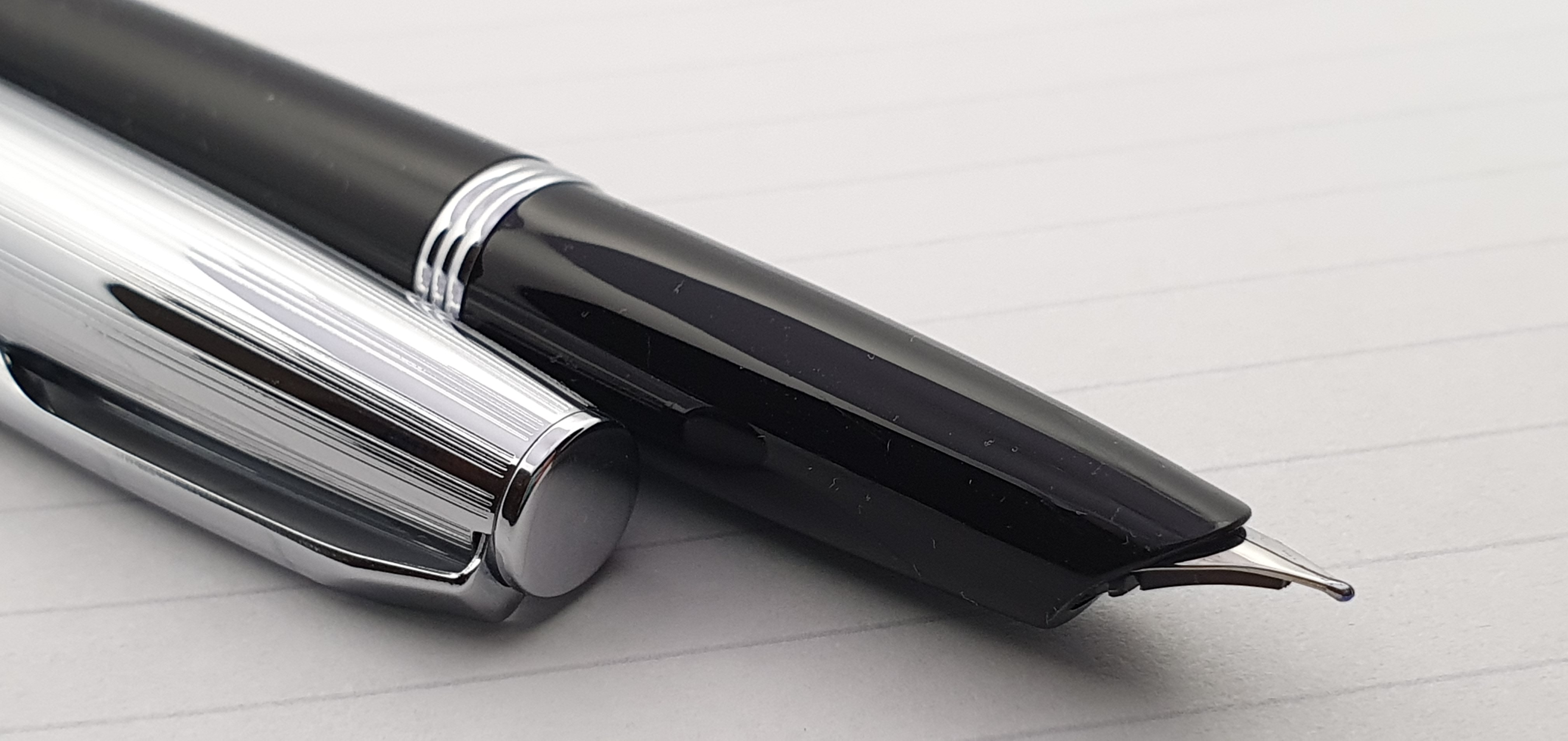 The steel nib has no visible markings but is a medium. The tipping, when viewed head on, is rounded making for a rather small sweet spot and a line that is on the fine side for a medium. It feels firm and this, together with the absence of a flattened (or stubby) surface for contact with the paper, means that there is little line variation between down strokes and cross strokes. Mine was set up well but I also flossed and smoothed the nib just a little, to try to improve ink flow and lubrication.