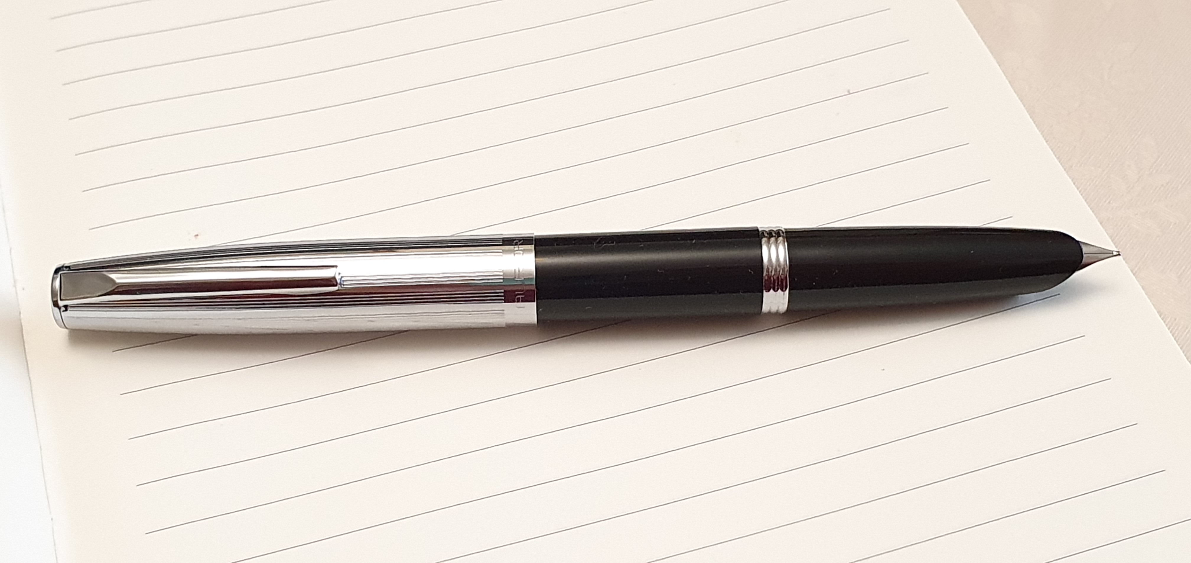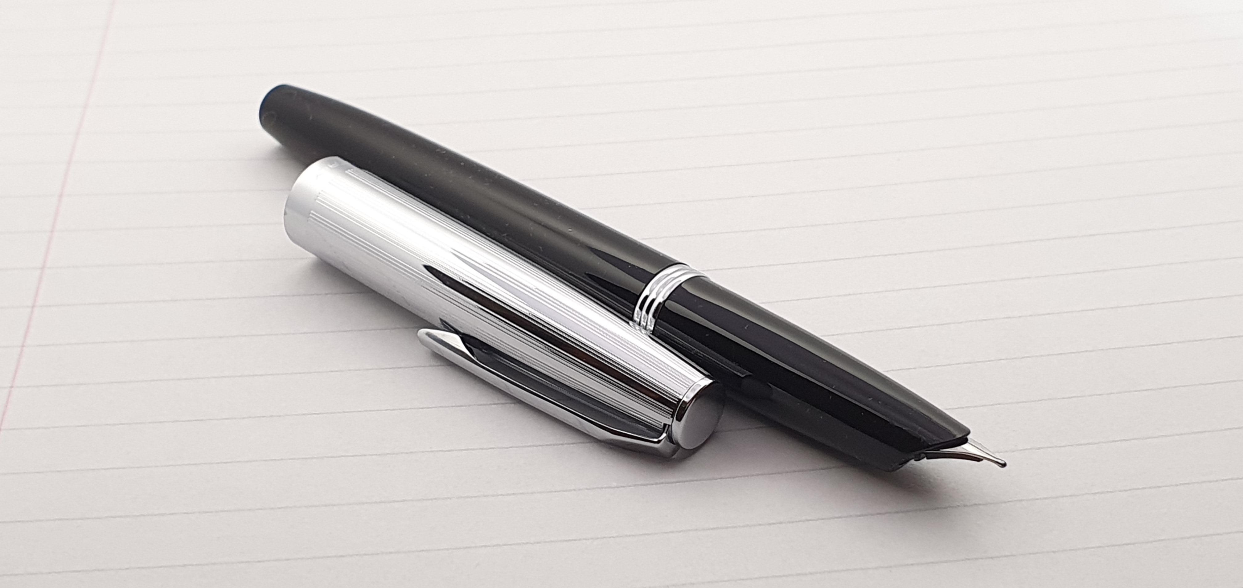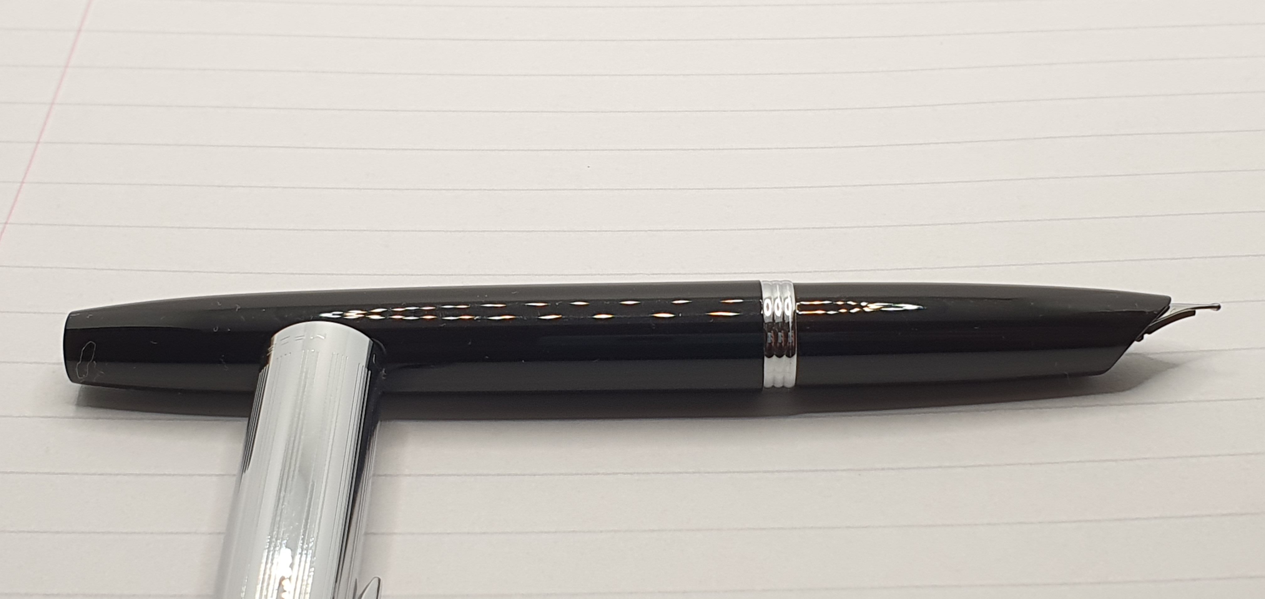 I am very taken by the vintage styling of the pen, with its modern materials. I enjoy holding and writing with it. It works best in my lefty-underwriter style. I am also glad to be able to use it with Parker cartridges or converters. I would like the pen even more if I had better handwriting and a more conventional writing style. As a person who is predominantly a lefty over-writer, I have found in recent years that oblique nibs are a benefit for me. It is not the most forgiving of pens to use as the nib has a narrow sweet-spot. I think this will improve with use.