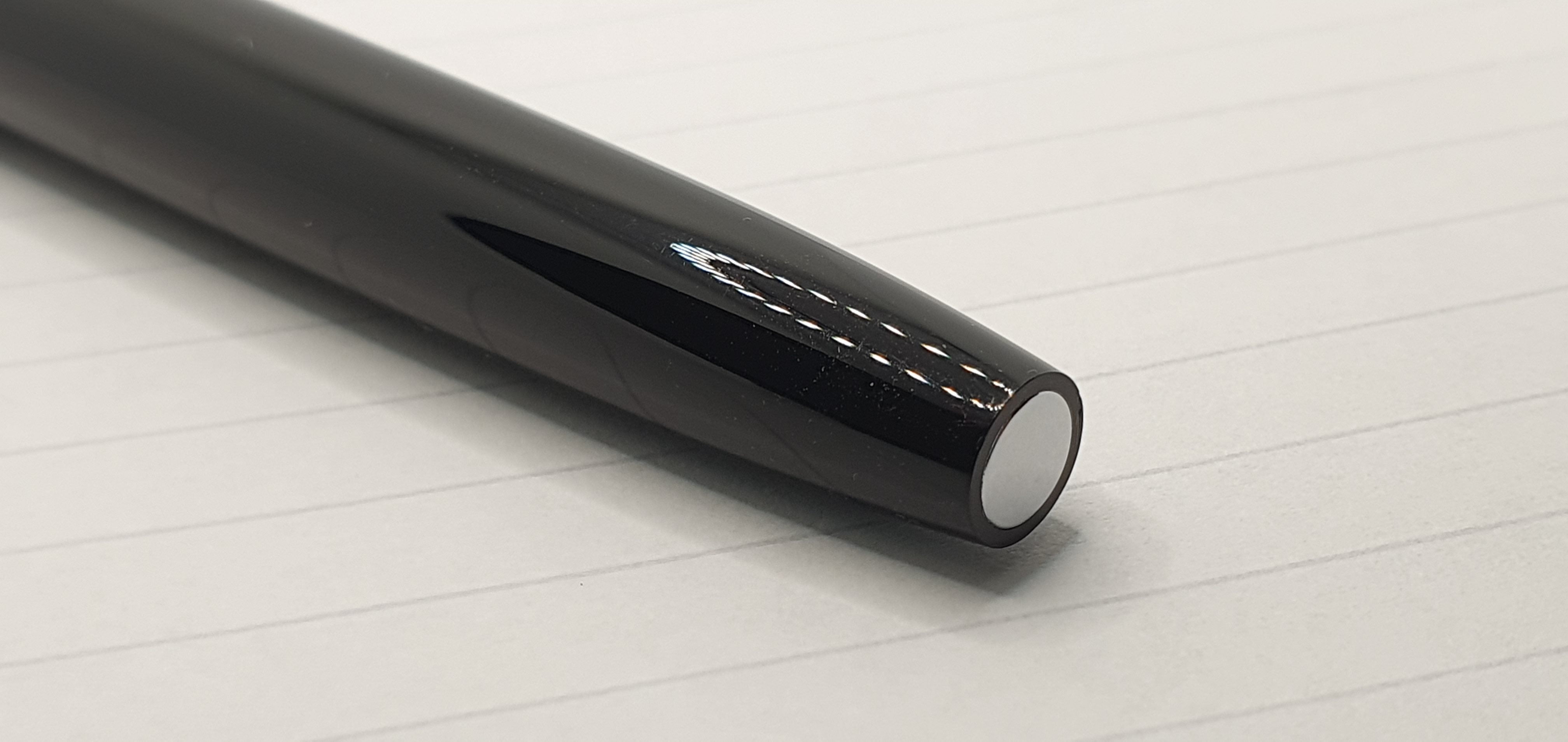 The cap is friction fit but fits very snuggly and securely, and makes a little pop as it is removed. As the cap material is so thin, the cap and barrel are almost flush when the the pen is capped.