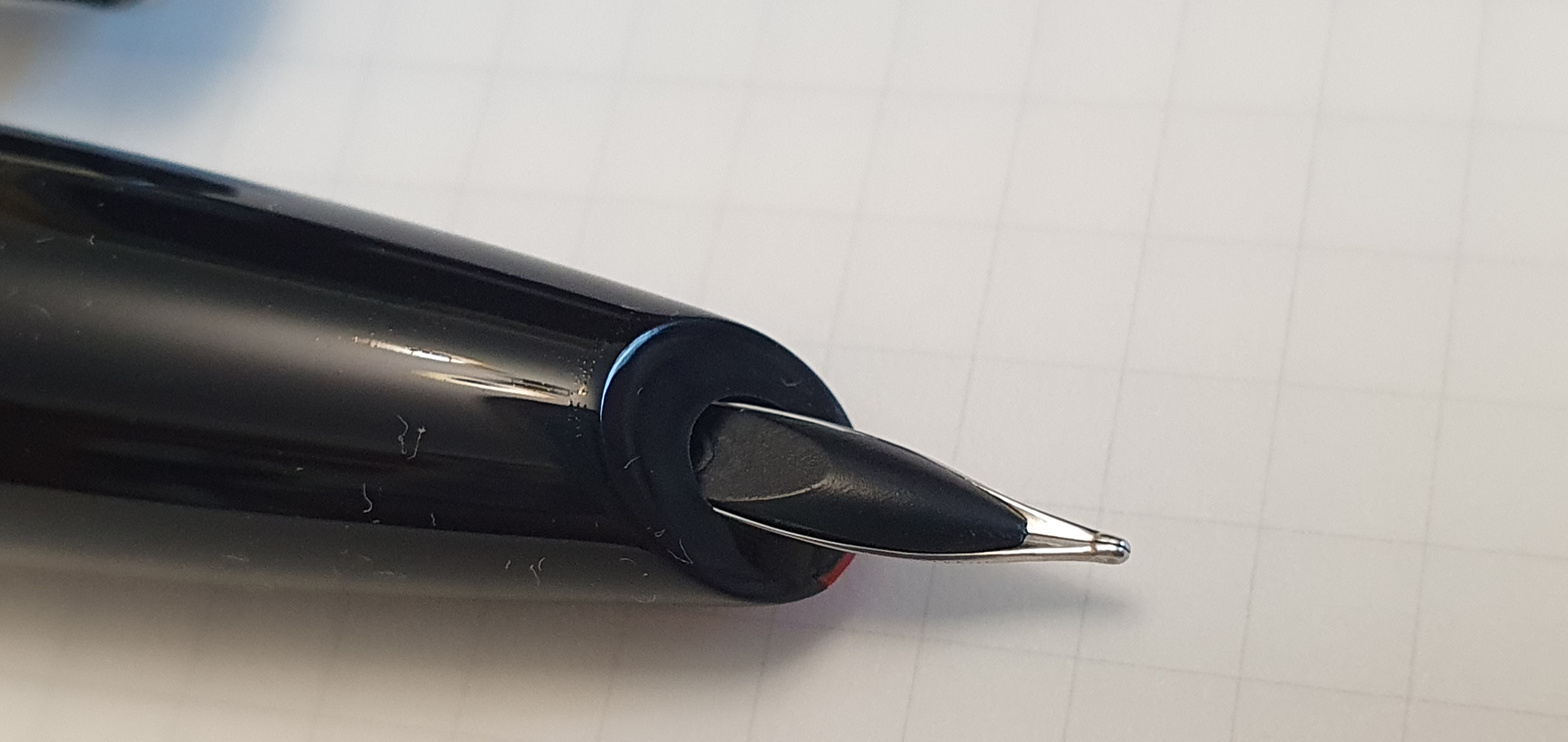 On close examination of the pen body with a loupe, I did find two hairline cracks, one on each side of the cap. These are not noticeable unless you look hard for them and do not affect the pen’s performance. I could run a little glue along these to seal them but there does not seem to be any real need. Crucially, I have not experienced any hard starts. The nib does not dry out, even though there is a round air hole in the cap, through which the nib can be directly seen. There is no inner cap. I am delighted with this purchase.