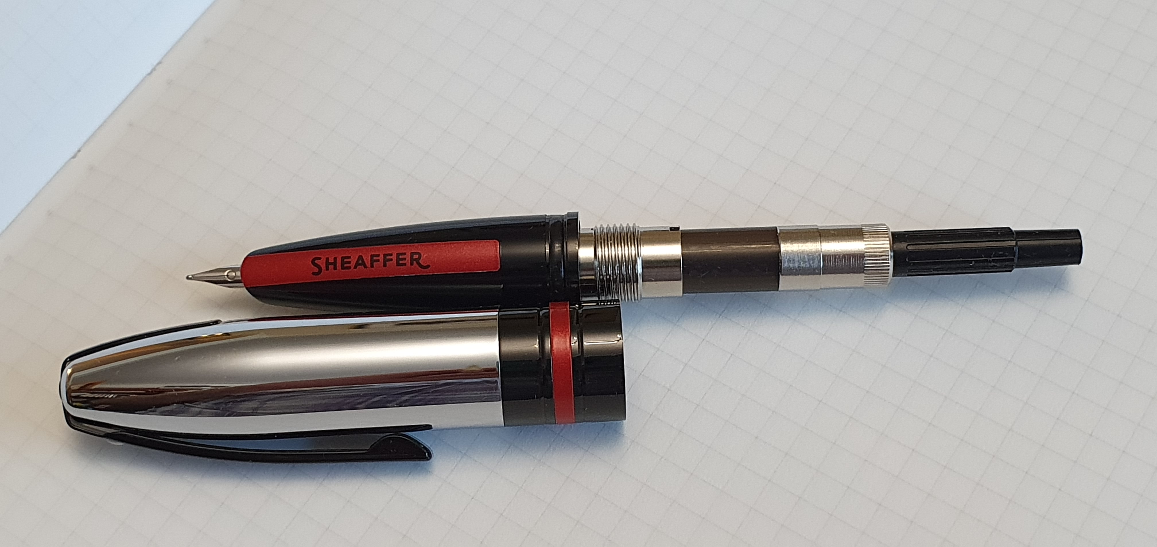 Unfortunately I found that the main issue with this pen was that, once the ink in the feed had been exhausted, it would dry up and stop. Ink was not getting to the feed. I suspected that this may be due to a blockage stopping air getting into the sac. I tried flushing and refilling the pen several times and changed inks but the problem persisted. Eventually, after a week or two, I disassembled the pen. Using a hairdryer, I warmed the section to soften the shellac to unscrew the section. However I was not able to remove it and suspected that it might have been glued with something stronger. Perhaps I should have persisted with my hairdryer to make sure.