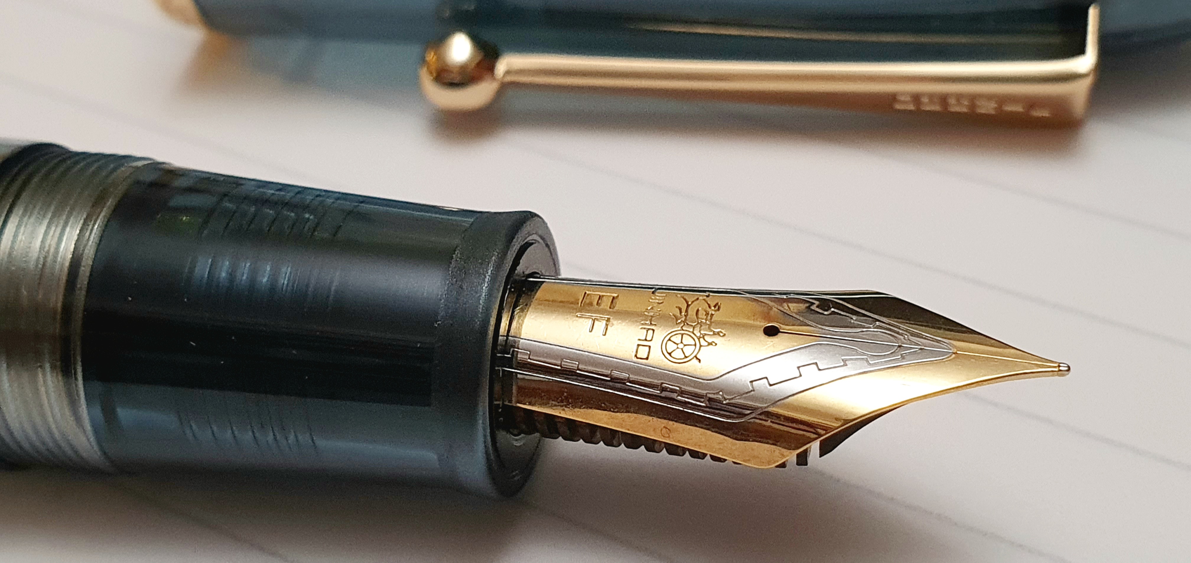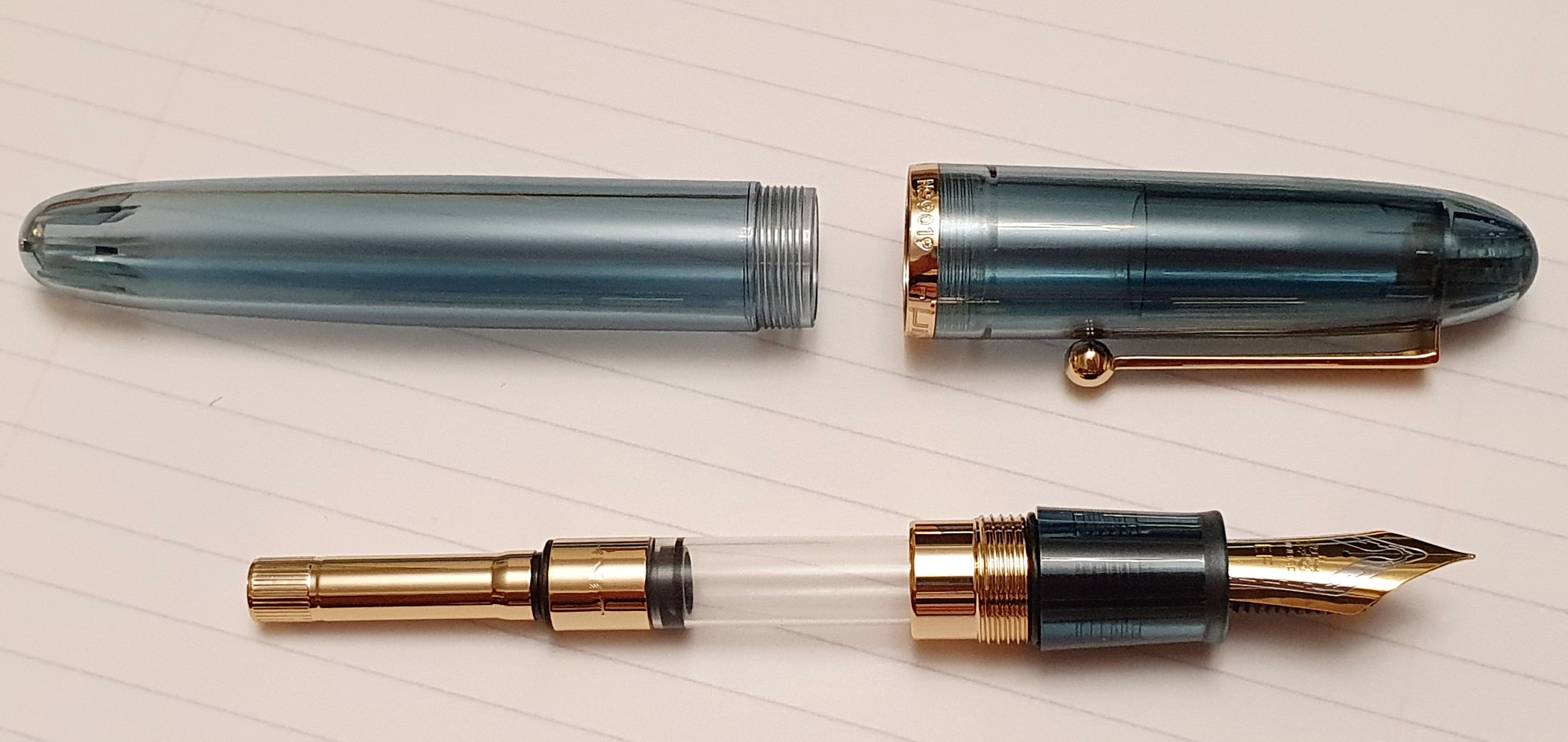 On its arrival, my pen still had traces of blue ink and I gave it an initial flush in water, using the converter. On squeezing the converter, a healthy stream of air bubbles was emitted from the nib, an encouraging sign.