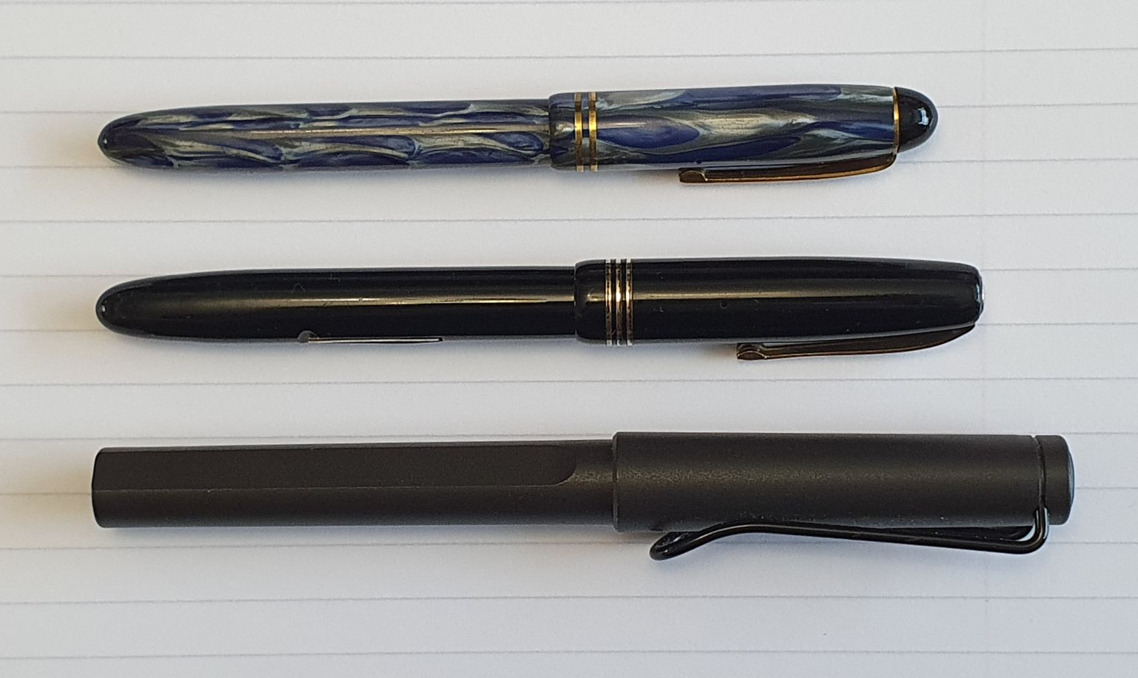 Once again, I had made the mistake of expecting the pen to be bigger! Although larger all round than my Burnham 54, it is still a small pen by modern standards. With vintage pens, I avoid posting the cap in case of damaging the cap rim. An alternative is to find a cap from a modern pen to post, to add length. In this case, I found that a cap from a Speedball calligraphy pen worked very well, but I found it preferable, at least for short writing sessions, to get accustomed to holding the pen unposted.