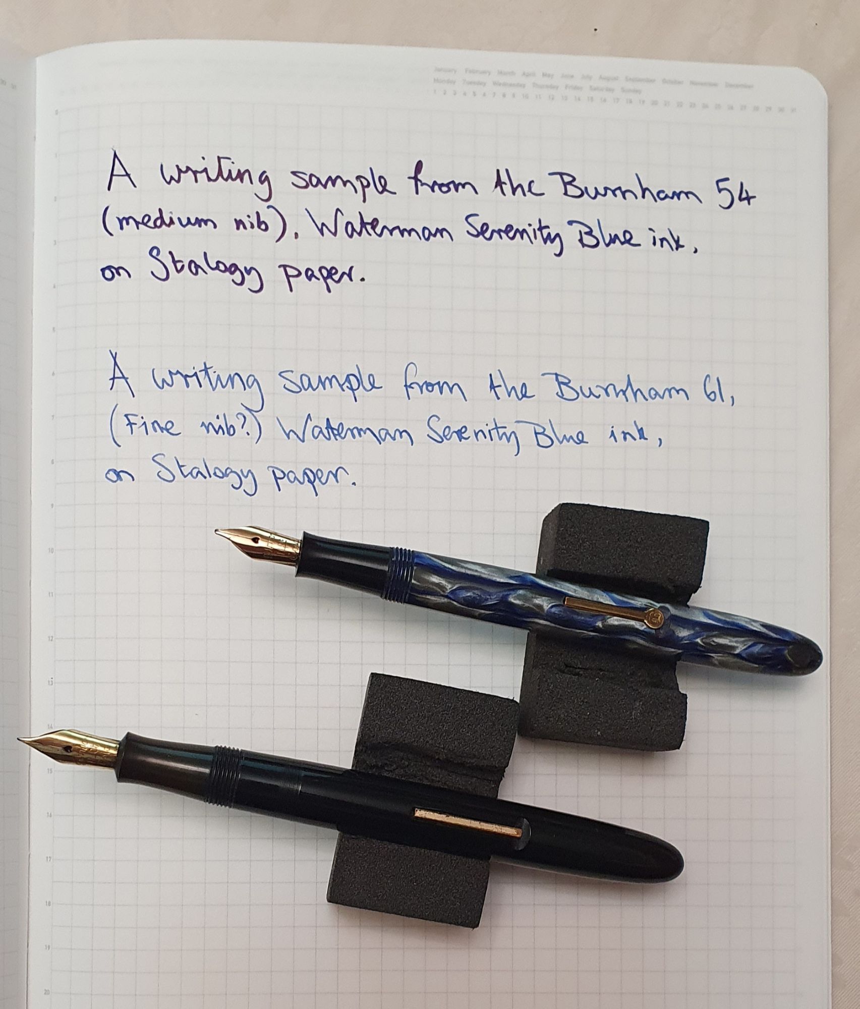 I would have been happy if this pen had simply written the same as my Burnham 54, but the fact that it wrote with a lovely precise fine line, was a bonus. Once again, the nib felt smooth on my Stalogy notebook paper, but there was a distinct feedback, hard to explain yet exquisitely enjoyable!