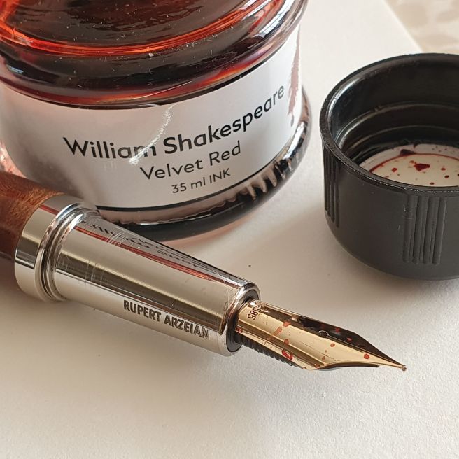 I was also pleased to find that the nib did not dry out overnight. My second fill was with Pelikan 4001 Brilliant Brown, a drier ink but still I experienced no hard starts in three weeks of use. I am currently using Montblanc William Shakespeare Velvet Red, with equally good results.