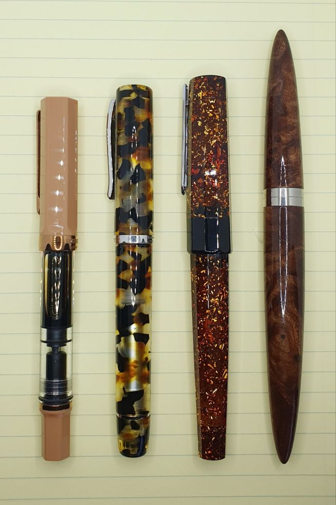 Size comparison with TWSBI Eco, Scribo Write Here “Africa”, and Benu Euphoria “Bourbon”.