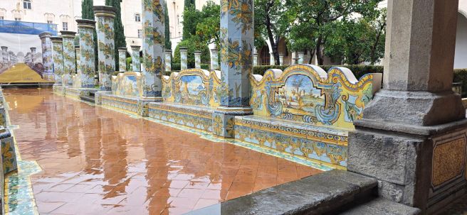 We had three nights in Naples, although it seemed longer and we walked constantly. There are numerous quiet churches which can be visited. One particularly memorable oasis of calm was the Santa Chiara Cloister, a monastery in the city centre with a large church and an adjoining garden with colourfully decorated tiled columns. In the adjoining museum, I read that the church had been bombed in 1943 and burned for six days. A lot of treasures were destroyed but it was restored and re-opened in 1953.