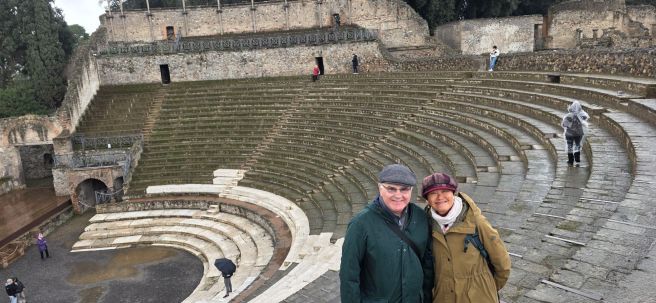 Whilst in Naples, we could not miss visiting nearby Pompeii, a Roman city destroyed in the eruption of Mt Vesuvius in AD 79. Thousands of residents died from a sudden thermal shock. The city was buried under about 4 – 6 metres of volcanic ash which hardened over the centuries. Modern excavations (which are ongoing) have revealed a vast, well preserved site. Our archaeologist tour guide Anna, gave us a fascinating insight into day to day life in Roman times.