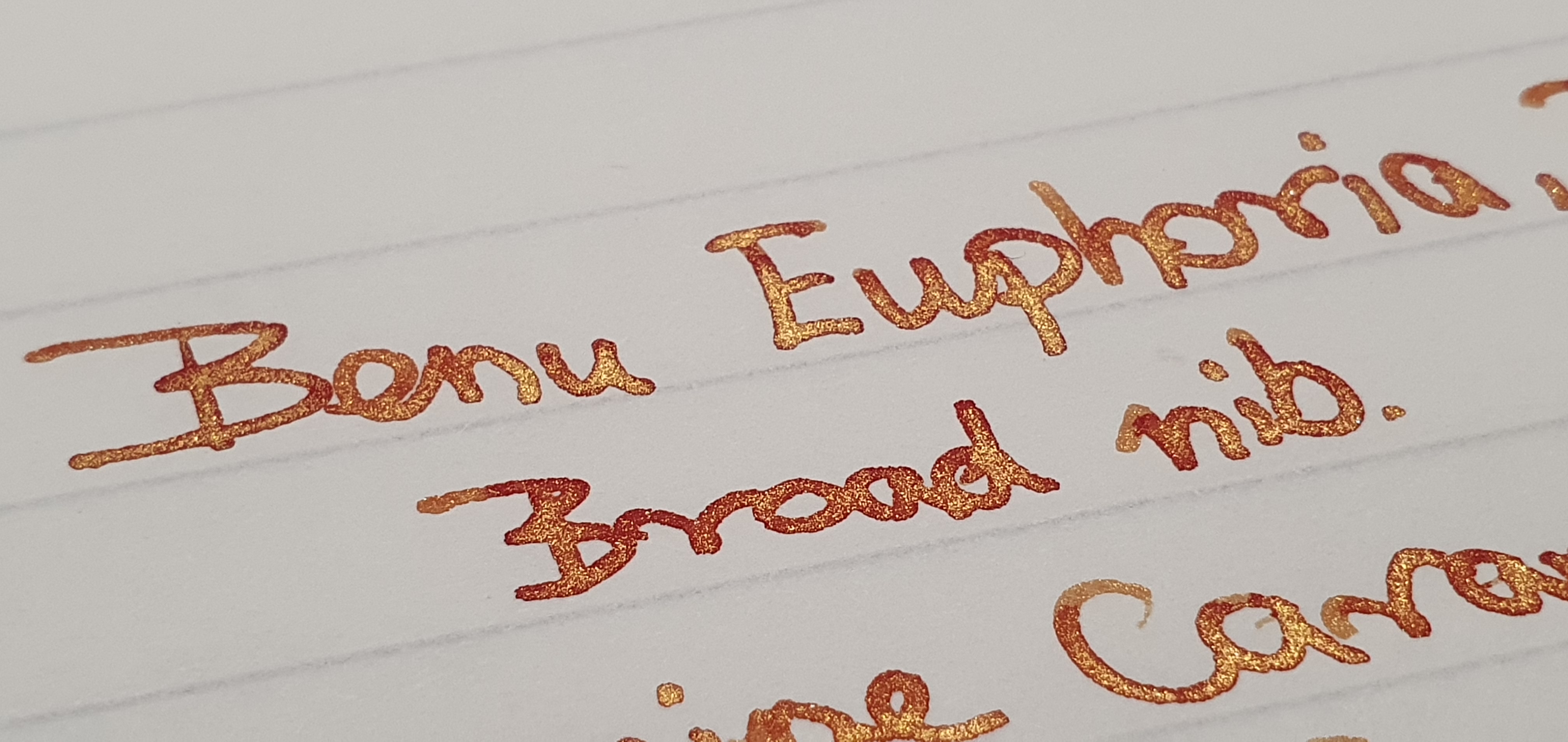 Happily, I soon grew to fully enjoy the Ondoro once again. The key to this, in my case, was finding a comfortable grip. I found this by resting the section on my second finger, and then gripping the pen between thumb and forefinger a little higher up at the bottom of the barrel. I found that I could hold the pen with the nib at the “sweetspot” (rotated inwards slightly) if I held the pen at the facets, leaving one facet in between.