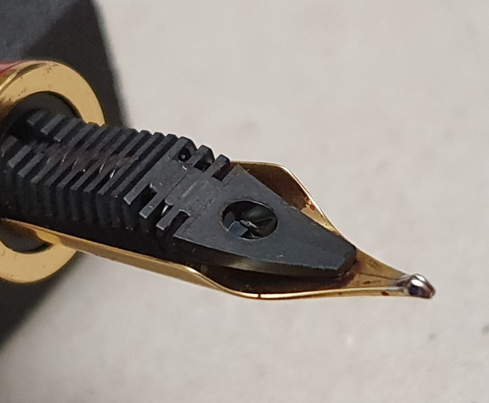 - Facets: Unless held around the section, gripping the pen at the barrel has a risk that the facets may not necessarily fall where you would wish to grip the pen. You may instead encounter a sharp ridge between two facets, or else have your grip dictated by the position of the facets, rather than by the best rotation of the nib to the “sweetspot.”
